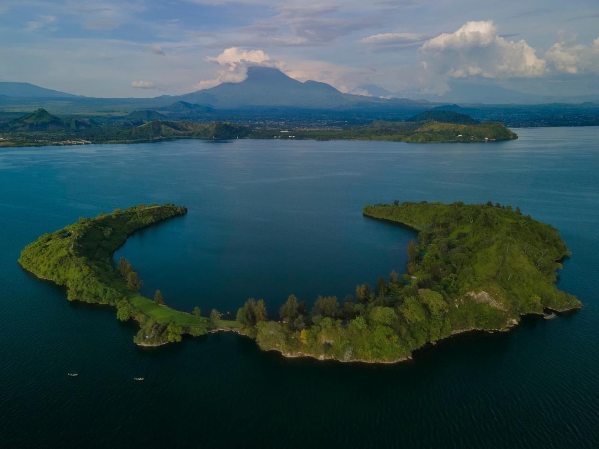 Ancien cône volcanique émergeant du Lac Kivu, offrant une combinaison unique de paysages volcaniques, biodiversité lacustre et activités outdoor (natation, kayak, observation d'oiseaux, navigation douce).