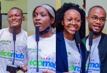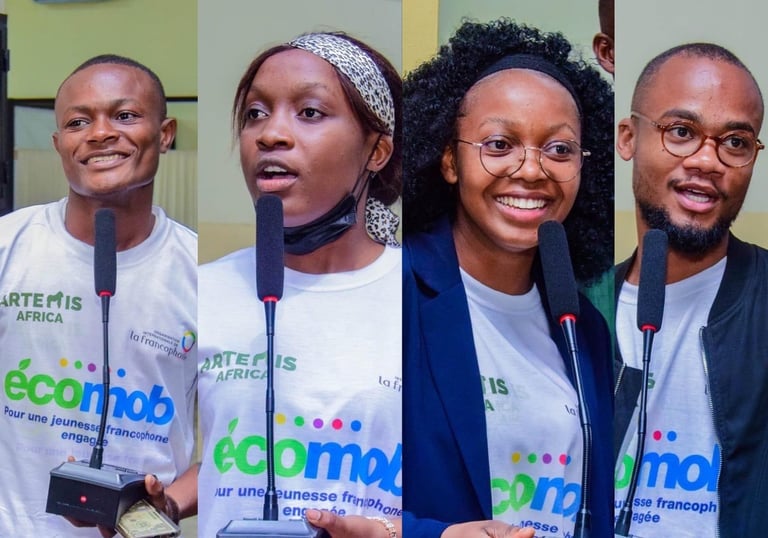 En partenariat avec l'Organisation Internationale de la Francophonie (OIF), ce projet a mobilisé plus de 100 jeunes à Kinshasa autour de la collecte, du tri et de la valorisation des déchets plastiques, métalliques et organiques. Plus de 400 kg de déchets collectés, 6 millions de personnes sensibilisées via radio et réseaux sociaux, et développement de solutions innovantes : vermicomposteurs, jardins verticaux, objets recyclés et foyers améliorés.