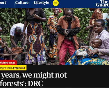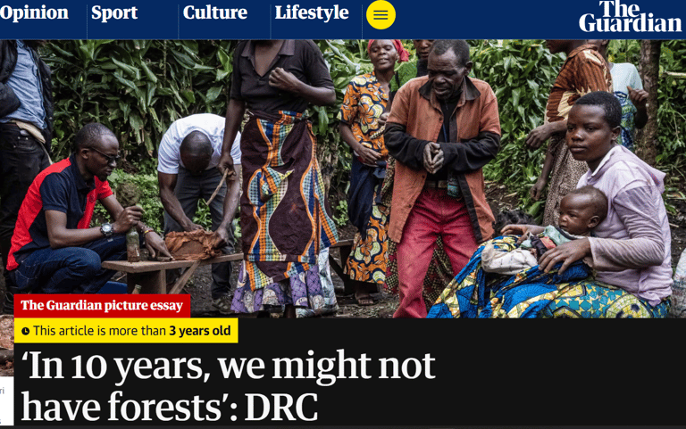 En juillet 2022, The Guardian a publié un reportage photo majeur intitulé "'In 10 years, we might not have forests': DRC struggles to halt charcoal trade – a photo essay", produit par le photojournaliste Ed Ram. Ce reportage examine en profondeur les défis de la déforestation au Parc National de Kahuzi-Biega et met en lumière le travail d'Artemis Africa pour développer des solutions énergétiques alternatives durables en collaboration avec les communautés Batwa et d'autres groupes marginalisés. L'article documente comment Artemis Africa, depuis 2019, forme les communautés locales à produire des boules d'argile combustibles comme alternative au charbon, réduisant ainsi les coûts de combustible d'un tiers tout en diminuant la déforestation. Cette couverture dans The Guardian a sensibilisé le public international aux enjeux complexes liant pauvreté, conflits, droits des peuples autochtones et conservation.
